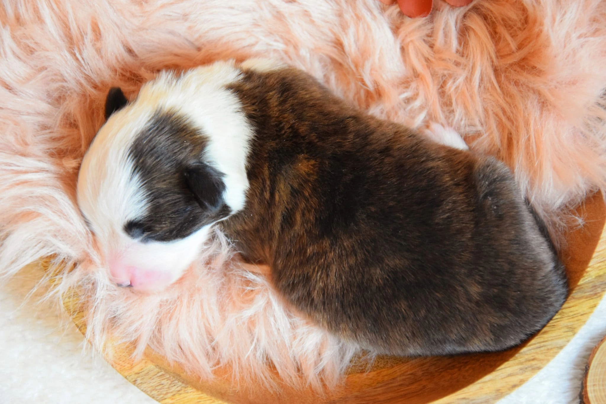 ur. 22.05.2019, pręgowana z białymi znaczeniami, PRA-free, DM-free, von- Willebrand-free, Fluffy-carrier, HD-A, ED 0/0