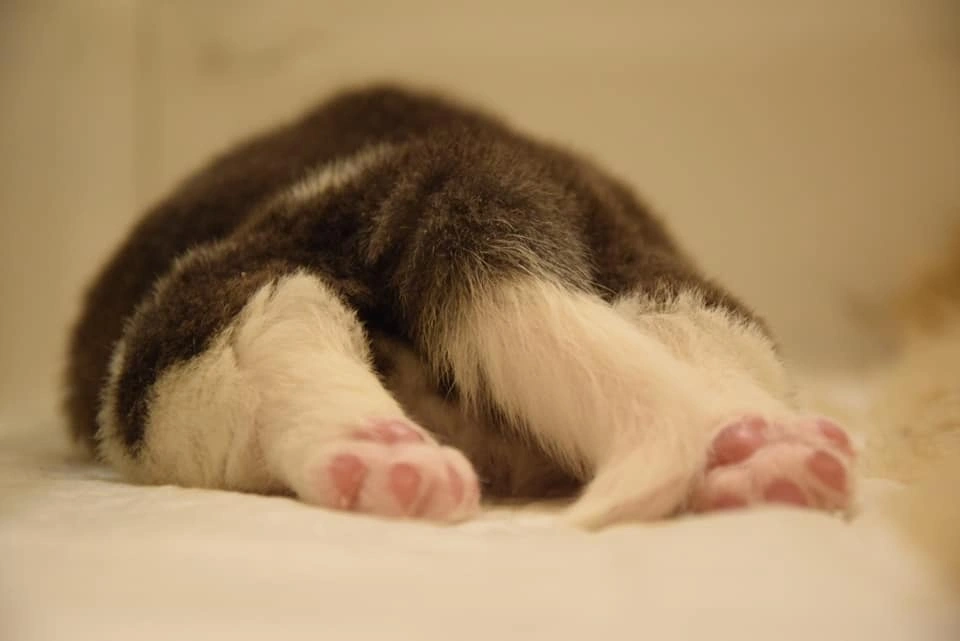 ur. 22.05.2019, pręgowana z białymi znaczeniami, PRA-free, DM-free, von- Willebrand-free, Fluffy-carrier, HD-A, ED 0/0